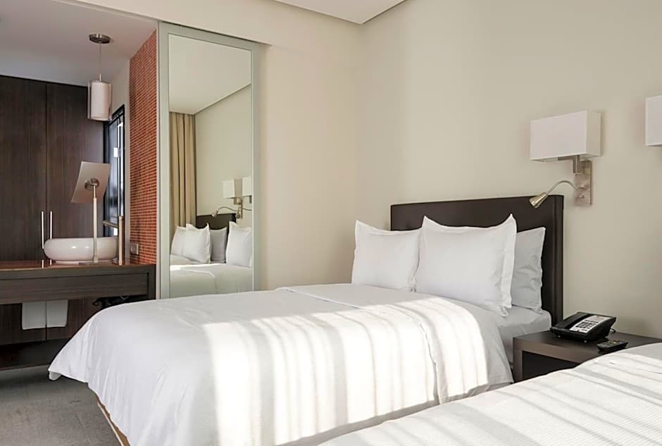 This spacious room offers both the perfect place to rest and to get your work done quietly and comfortably. It is equipped with a king bed, closet, bathroom, air conditioning, coffeemaker, work desk, telephone, wireless high-speed Internet, and cable TV with LCD screen. It also has a full living and dining room, alarm clock, and a sofa bed.